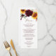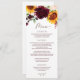 Tournesol d'automne et Rose Watercolor Mariage Menu : Ce menu mariage d'automne/automne présente des tournesols aquarelles et des fleurs bordeaux avec verdure. Le dos tient vos initiales dans un cadre rustique tournesol et rose.Vous pouvez ajouter du texte à l'arrière en cliquant sur "customiser plus loin".