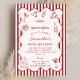 Set against a stylish striped background with a whimsical squiggle doodle frame, this design exudes warmth, sophistication, and a touch of fun — perfect for hosting a cozy pasta dinner, intimate family gathering, or festive wine night in honor of her wonderful milestone birthday.