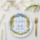 Ciao Bambino Lemons blue bow ribbon Italian baby shower monogrammed paper plates, citrus lemons blue and yellow baby shower personalized printed paper plates; Italian baby shower personalized table decor