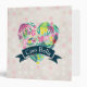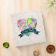 A binder with customizable text which says Ciao Bella written in curved text inside a blue green ribbon layered over a charming heart filled with tropical flowers and leaves in pink, green and yellow colours.