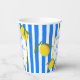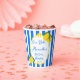Ciao Bella Dolce vita Lemons blue stripes Italian bridal shower personalized paper cups template, citrus lemons blue stripes bridal shower monogrammed paper cups; summer Italian bridal shower printed paper cups, vintage Italian bridal shower paper cups, wavy border funky bridal shower personalized name paper cups