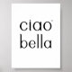 Ciao bella, hello beauty in Italian. Typography in black and (transparent) white. You can change the background color.