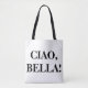 This chic tote bag is just what you need to carry life's essentials and still look stylish! Reads 'CIAO, BELLA!' - which means, 'Hello Beautiful' in Italian.