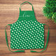 A stylish and cheerful apron designed with an all-over print that alternates between the classic green and white from the Italian flag. The apron features matching straps in a clean green colour for a cohesive and polished look. The text "Ciao" is elegantly displayed in a bold font with flowing swashes, giving the apron a sophisticated yet fun vibe. The background is adorned with a charming polka dot pattern that adds a playful touch to the overall design. Perfect for cooking, baking, or hosting, this apron brings a blend of elegance and personality to any kitchen setting.