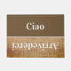 Simple text design in Italian in burlap look /solid brown background and white fonts .Ciao - this is the famous Italian way to say Hello and Arrivederci is a way to say Good-bye .Modern design by lumirala . You can change the text /fonts and their size and colour .