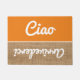 Simple text design in Italian in burlap look /solid orange background and white fonts .Ciao - this is the famous Italian way to say Hello and Arrivederci is a way to say Good-bye .Modern design by lumirala .