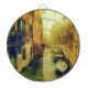 Bask dans la lueur d'automne romantique de Venise, Italie avec une belle peinture italienne imprimé dans des teintes terreuses d'orange rouillé, jaune doré, et vert olive. Promenez-vous dans un canal tranquille bordé de bateaux amarrés et de bâtiments anciens, en passant par un balcon vénitien avec des fleurs rouges encore en fleurs. ♡ Idyllfire