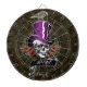 Ce panneau de dard frais a un grand arrière - plan avec un crâne frais utilisant un casquette supérieur pourpre avec deux roses de chaque côté. Il y a un corbeau blanc été perché sur son casquette et un rouleau qui lit, "l'a laissé rouler." Cette illustration est faite dans un style de tatouage. Perfectionnez pour une salle de jeu, une caverne d'homme comme cadeau ou pour vous-même.