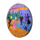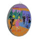 Cette Cible de flechettes de Retro Urban Rooftop Party est enivrante dans ses détails. Le dessin animé présente le type de cocktail extrêmement sophistiqué que l'on ne voit normalement que dans les films des années 1960. Les fêtards ont beaucoup à faire. Du confort d'un appartement penthouse, les clients profitent de la vue et de l'ambiance. L'éclairage donne de l'humeur et on peut voir les silhouettes sombres d'un beau couple dansant le cha-cha. Au sol, il y a un violet, portable, joueur de disque aux pieds du couple de danse. Plusieurs albums ont été éparpillés à proximité. Même avec la lumière tamisée qui fait apparaître pratiquement tout dans la pièce dans les tons violet, bleu et noir, on peut dire que tout le monde est habillé aux neuf. Derrière la danse, un couple intérieur, il y a un gentleman en costume noir tenant un martini verre. Il parle à une beauté brune qui se tient près d'un des murs en verre du sol au plafond. À partir d'un lampadaire, une seule ampoule jette une lueur romantique sur la scène. Il ne manque que l'abat-jour. Hmm... Où est l'ombre ? C'est sur la tête d'un homme qui a fait la fête sur le toit orange. Il a clairement de beaux mouvements de danse et il n'a pas peur de les montrer au monde ! Son compagnon est une femme blonde et pleine de forme en robe rose vif. Son dos est arqué alors qu'elle jette son martini d'une manière non inhibée. Au-delà de la fête, on découvre un horizon turquoise à couper le souffle, avec des gratte-ciel et un ciel violet. Si c'est ainsi que vit l'autre moitié, inscrivez-moi !