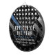 Cette conception comprend un drapeau de la police avec des rayures noires et blanches, ainsi qu'une fine bande bleue. Ce tableau de bord est un excellent moyen de remercier un shérif, un capitaine ou un chef d'officier pour leur service et de les reconnaître comme officier de l'année.