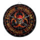 Équipe de réponse de manifestation de zombi, logo de cercle avec le symbole de biohazard, AK47s, et crâne de zombi.