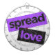 Design typographique moderne, simple, dynamique et ludique d'un dicton "Spread Love" aux couleurs violet et noir. Cool, urbain, tendance et audacieux graphisme