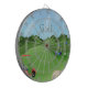 Cette Cible de flechettes jouante au golf comporte un arrière - plan de terrain de golf avec un dessableur et le drapeau de golf, un chariot de golf rouge, un chariot de golf bleu tous les deux avec des sacs de golf. Le texte stylisé est golf. Cadeau parfait pour le golfeur dans votre vie ! Inclut 6 dards en laiton (3 vols de dard de drapeau américain et 3 vols BRITANNIQUES de dard). Panneau réglementaire de taille (18" diamètre, 1" profondément). Fini avec le cadre en aluminium et le crochet accrochant.