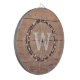 Monogramme design pour Noël avec couronne et décoration de neige sur arrière - plan en bois rustique
