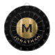 Carte moderne de fléchettes noires avec un emblème d'or métallique brossé avec typographie de bloc classique initiale et nom. Personnalisez avec le nom et l'initiale.