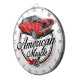 Il s'agit d'un dessin d'un véhicule classique créé à l'aide de craies, de marqueurs et de crayons colorés avec un arrière - plan numériquement créé.