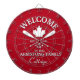 Super fun "bienvenue au chalet du lac" customisé dart board avec un design patriotique canadien de feuille d'érable avec des avirons croisés et une ancre. Changez le nom, l'année et le nom de votre escapade de vacances (maison de plage, cottage, maison d'été, etc.) pour en faire un cadeau merveilleusement unique.