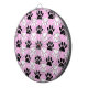 Un motif en noir et blanc d'empreintes de pattes de chien avec des effets désespérés sur un arrière - plan rose. Style dessin animé original.