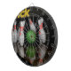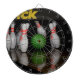 Un tableau de bord avec une photo d'épingles de bowling et une boule de bowling verte.