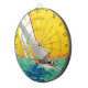French and European Travel Advertisements - Blue sea and sunny yellow sky illustration
