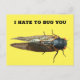 This postcard is ready to be customized with your own fun headline on the front in bold black lettering. It features a photo of a cicada set against a bright yellow background.
