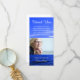 Le mémorial élégant de sympathie vous remercient des affichages de carte de photo une photo personnelle de votre aimée. L'arrière - plan nautique est une photo bleue d'un ciel nuageux au-dessus des ressacs bleus profonds. Lit le "Merci" au dessus avec un message de gratitude au-dessus de la photo. Sentez-vous libre pour changer le sentiment en vos propres mots personnalisés des mercis si vous souhaitez. Le fond lit "de la famille de" avec le nom personnalisé en manuscrit élégant. La manière gentille d'exprimer vous remercient aux amis et aimé.