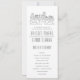 Un programme de mariage sur le thème de la skyline deco pour un mariage ayant lieu dans la belle ville de Baltimore, dans le Maryland. Cet article présente une illustration stylisée de l'horizon unique de la ville avec son nom en dessous. Viennent ensuite les informations de votre jour de mariage dans un style ouvert et assorti.