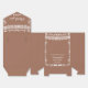 Elegant terracotta baby shower favour box with delicate white papel picado banner and ornamental lace-style frame. Personalized with the baby’s name and event date, this charming gift box adds a refined touch to your Cielito Lindo or classic baby shower celebration.
