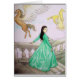 Les aquarelles Art. Heavens est d'une belle dame descendant les étapes d'un château dans le ciel avec Pegasus ou vol de pegasi à l'arrière-plan…