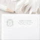 Cette Elégante crête baroque Monogramme Sage Green Mariage d'adresse de retour label dispose d'une vintage crête de monogramme de style baroque et d'une élégante calligraphie,