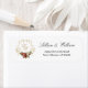 Elégante crête vintage d'or avec bouquet de pin de Noël, roses et saint avec des champs de texte modifiables pour les initiales, noms et adresse de retour de mariée et mariée. Coordonné avec ma collection de Mariages floraux de Noël d'Opulence dorée.