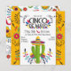 Festive holiday invitation for Cinco de Mayo with gold border with a floral Mexican folk pattern cactus wearing a sombrero with maracas.