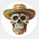 A vibrant and colourful skull wearing a traditional Mexican sombrero, representing the festive spirit of Cinco de Mayo