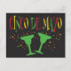 Cinco de Mayo celebration card with margarita glasses, party font, and fiesta confetti in Mexican color theme on a black background.
