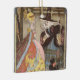 Vintage illustration classic children's fairy tale story book design featuring the girl Cinderella wearing a beautiful evening gown dress and her glass slippers. She is all dressed up like a princess and ready to go to the ball to meet her Prince Charming. She is talking with an old woman, her fairy godmother while her cute black cat looks on.