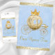 Cinderella birthday party invitation with fancy gold princess carriage on a beautiful Cinderella blue and gold glitter background. This beautiful girls any number Cinderella blue and gold once upon a time princess birthday party invitation is easily customized for your event by simply adding your details in the font style and colour, and wording of your choice. This is a printed design with no real glitter, diamonds, lace, etc.