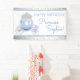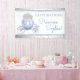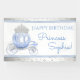 Cinderella birthday party banner with beautiful blue princess carriage on a pretty blue and silver background. This pretty Cinderella princess birthday party banner can be easily customized for your event by simply adding the text of your choice.