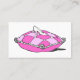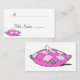 A custom wedding or princess party table placecards with script letters with vintage art of Cinderella's glass slipper on a pillow in light and dark pink on a white background.