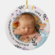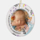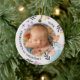 This is a precious, rounded Christmas ornament designed to celebrate a tiny treasure's milestone holiday. Featuring a sweet, personalized baby photo at the center, the design has a charming light blue frame accented with the classic Disney Princess, Cinderella, surrounded by delicate bluebirds and soft florals. The border is inscribed with text commemorating a First Christmas and the year. Complete with a hanger, this ornament is an exquisite, lasting keepsake perfect for marking a baby's first magical Christmas season!