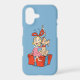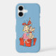 This absolutely darling illustration captures a moment of pure holiday joy! Cindy Lou Who, dressed sweetly in pink with her big red bow, is sitting happily atop a large, colorful Christmas present (red with a blue ribbon). Beside her sits her loyal friend, Max the Dog, looking cheerful and sporting his single reindeer antler! This heartwarming graphic perfectly celebrates friendship and the sweet excitement of Christmas morning.