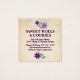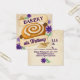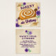 Pretty cinnamon roll, curvy text flag and purple flowers on this bakery business card for your home baking business.