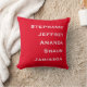 Ce carré simple et minimaliste jette l'oreiller, avec la place pour cinq noms, est un cadeau merveilleux pour une nouvelle maison ou une fête de ménage - ou pour vous-même, bien sûr ! Grand cadeau pour les nouveaux parents ou grands-parents. Il est clair, rouge et blanc, mais facile à changer de couleur. Le dos est rouge. Tous droits réservés © 2024 Alan & Marcia Socolik