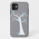 Cinq adorables oiseaux bleus abstraits pendent dans un arbre blanc contre un arrière - plan gris sur un Coque-Mate Coque Iphone 4 Couverture Coffre-téléphone à peine