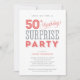 cinquantième invitations d'anniversaire de surprise avec une conception de rose, de gris, et blanche d'amusement. Personnalisez les mots pour vos cinquantième besoins de fête.