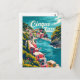 A picturesque and nostalgic portrayal of Cinque Terre, a collection of colourful seaside villages on the Italian Riviera. The design captures the charming architecture of Riomaggiore, Manarola, Corniglia, Vernazza, and Monterosso, nestled against dramatic cliffs overlooking the Ligurian Sea. Rendered in a vintage style, the artwork embodies the timeless beauty and tranquil atmosphere of Cinque Terre, inviting viewers to experience its unique blend of coastal allure and rustic charm.