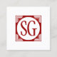A square business card template with initials placed inside a decorative box. In this version the initials are in the Integrity bold font. Name and profession/job title along with telephone, email and website address in black on the reverse side on a white background, using variations of the Matt Antique font.