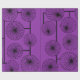 This wrapping paper has a mid-century modern design of circles with starbursts inside connected together with black lines, looking like a mobile.
