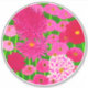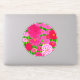 Sticker in a detailed illustration of fuchsia and soft pink chrysanthemums on a green background