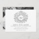Foliage wreath of leaves dark grey and white wedding photo save the date card. Edit this save the date card with your own names and wedding date on one side and your own photo on the reverse. Other matching items and colour options are available. Original leaves drawing and design by Sarah Trett for www.mylittleedenweddings.com