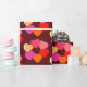 A wreath of many-coloured transparent glass-like hearts, repeated again and again on a deep red background--you can't say "I love you" too often--right? Just the right touch for that valentine gift you bought.